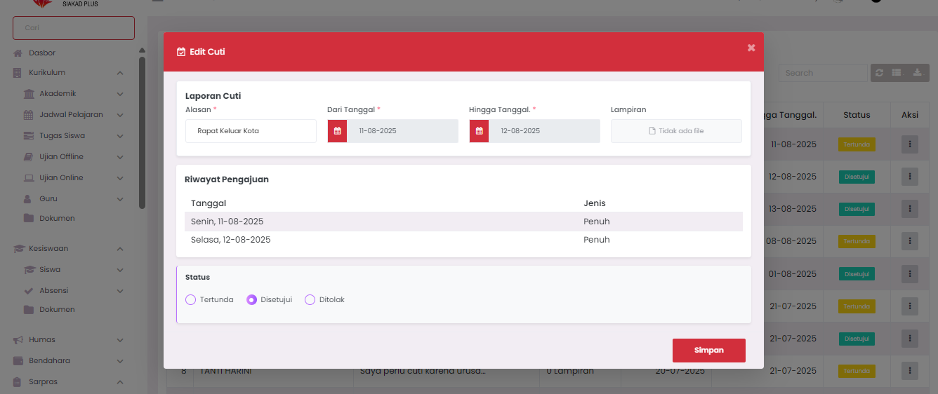 - Check the Attachments if a staff member applies for sick leave or leave with special reasons.