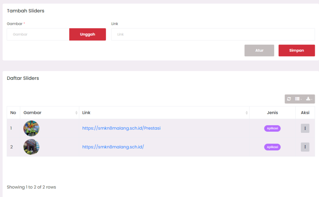 Access the Sliders menu from the admin sidebar. On this page, you can see two sections: