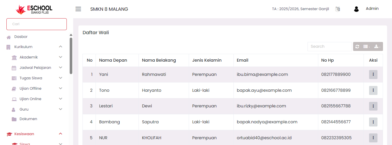 The Guardian List page displays all guardian data connected to active students in the school. This data is important for communication needs, verification, and granting guardian portal access.
