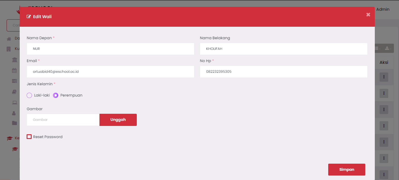 - Admins can check the Reset Password option in this form.