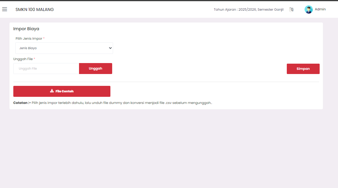 The Import Fees page is used to enter billing fee data in large quantities efficiently using CSV-formatted files. This is very helpful for managing uniform fee data for many students or classes.