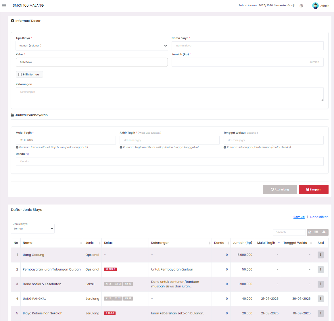 - Fee Type: Select the type of fee already registered in the system (for example "Building Fee", "Qurban Contribution", etc.).