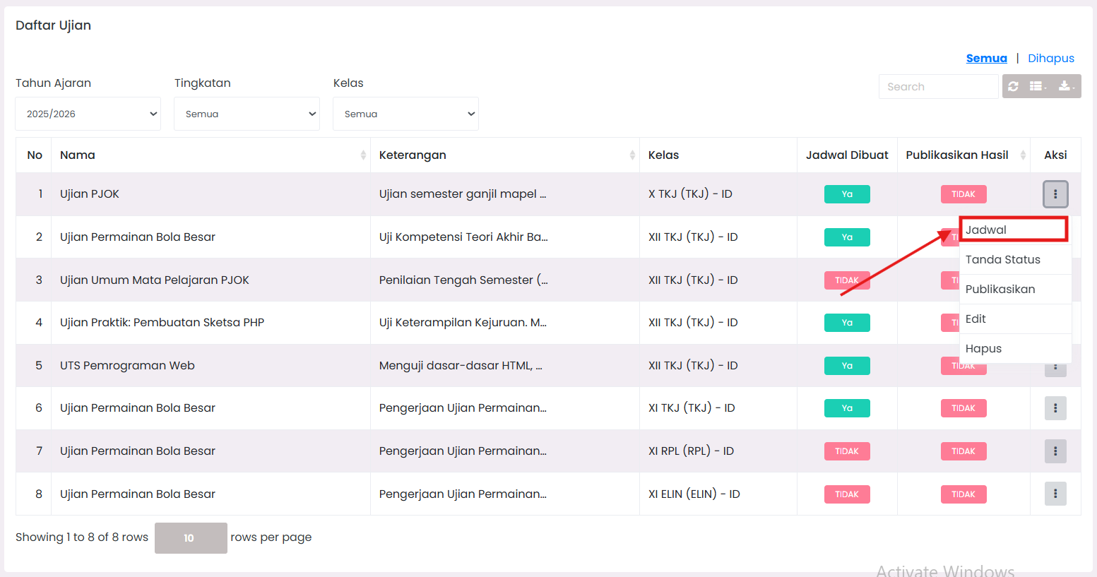 | Schedule Does Not Appear | You just created an exam agenda but haven't filled in its schedule details. | Click the action button (⋮) then select Schedule to fill in the time details. |