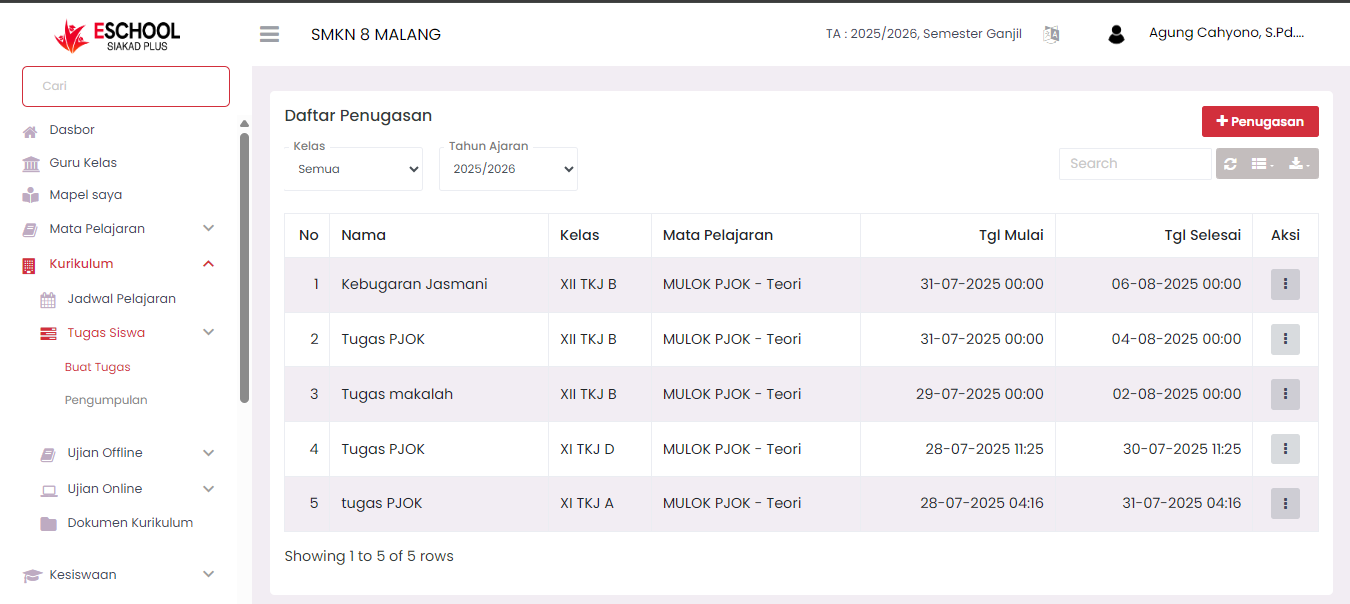 The Assignment List page in eSchool is where teachers can create, organize, and monitor all assignments given to students. This assignment process is integrated with the class system, academic calendar, and digital upload formats.