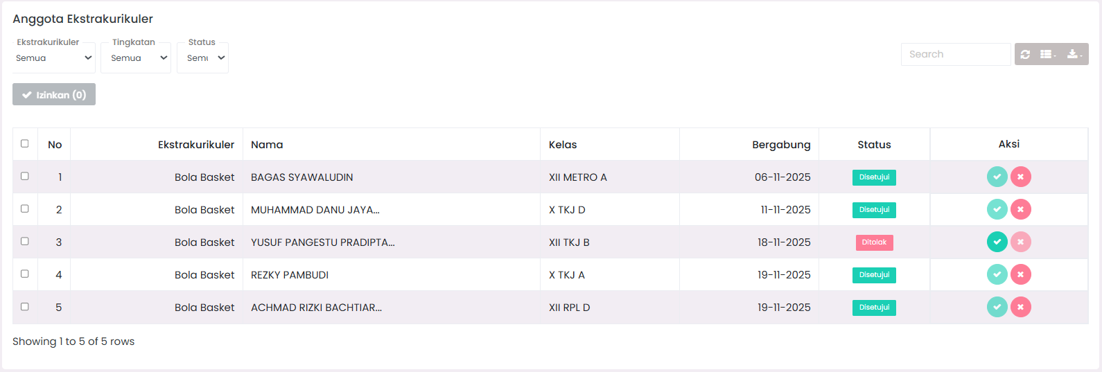 - Search Column: Search for specific students using their full name or NISN.